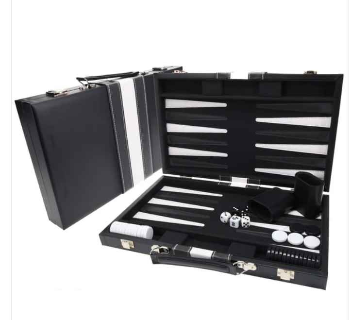 Black with Stripe Leatherette Backgammon Set, 14.75 x 9.75 in. Closed